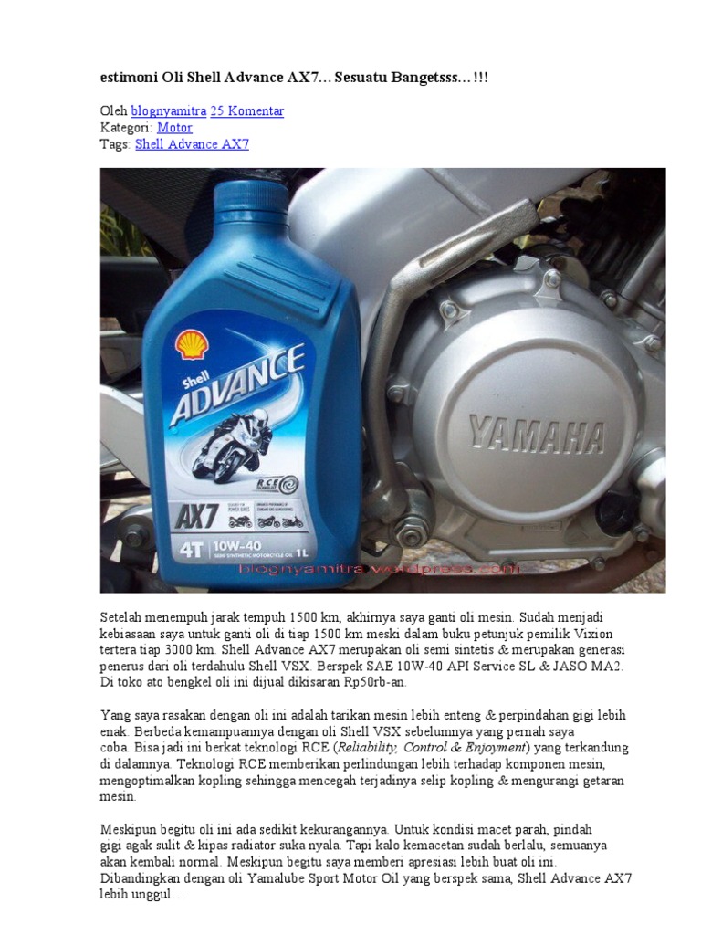 Pengalaman Menggunakan Oli Shell Advance Ax7 Di Vixion Jagatotomotif
